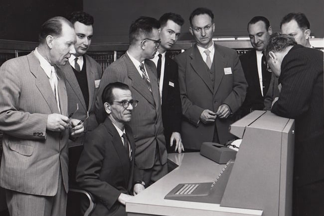 Սերգեյ Մերգելյան (աջից) կիբեռնետիկայի և արհեստական ինտելեկտի թեորիայի հիմնադիր Նորբերտ Վիների հետ (Լուսանկարը` Ս.Ն. Մերգելյանի արխիվից)