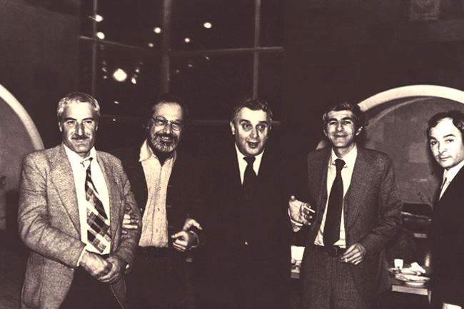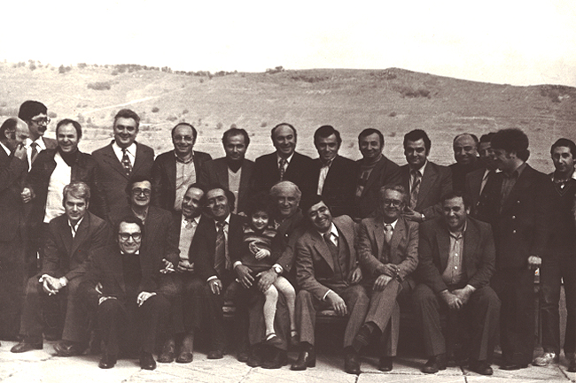 Զախից աջ կանգնած են՝ Թեոդոր Տեր-Միքայելյան, Վլադիմիր Կարաբեգով։ Զախից աջ նստած են՝ Ռաֆայել Ալեքսանդրյան, Սերգեյ Մերգելյան, Վահան Տոնյան