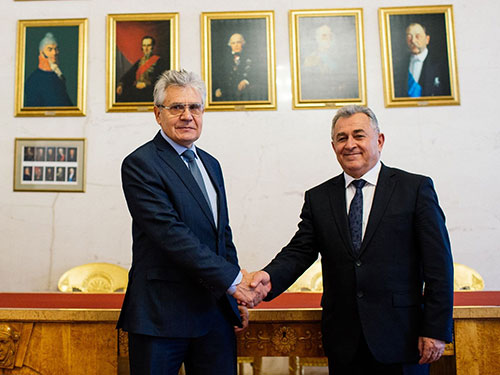 ՀՀ ԳԱԱ նախագահ Աշոտ Սաղյանը Բելառուսի Գիտությունների ազգային ակադեմիայի նախագահ Վլադիմիր Գուսակովի հետ քննարկել են համագործակցության ծրագրերը: Ներկայում կա 16 ծրագիր, որոնք համատեղ իրականացնում են երկու պետությունների ակադեմիաների ինստիտուտները՝ ՀՀ կրթության, գիտության, մշակույթի և սպորտի նախարարության Գիտության կոմիտեի և Բելառուսի Հիմնարար հետազոտությունների հիմնադրամի ֆինանսավորմամբ: «Որոշվել է առաջիկայում կնքել համագործակցության հուշագիր, որը կազմված կլինի Հայաստանի և Բելառուսի համար հրատապ և ակտուալ կետերից: Հայաստանը Բելառուս կգործուղի մասնագիտական պատվիրակություն՝ ճանապարհային քարտեզը կազմելու նպատակով, իսկ հուշագիրը կստորագրվի Վլադիմիր Գուսակովի՝ նոյեմբերին նախատեսված Հայաստան այցի ժամանակ», - ասաց Աշոտ Սաղյանը: